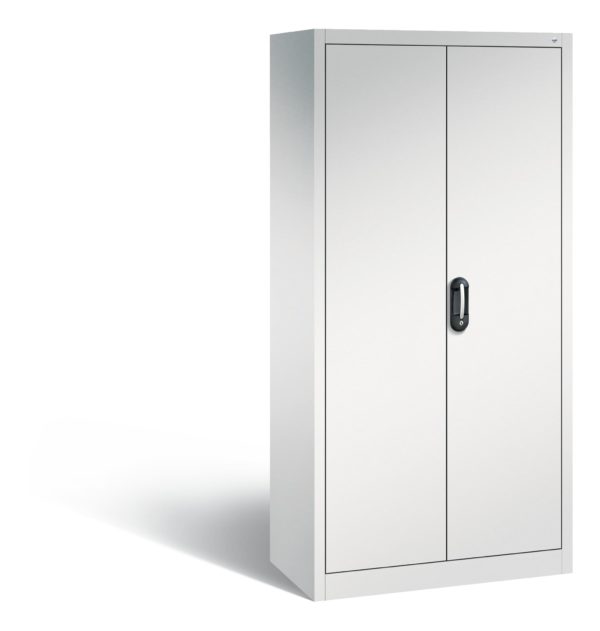 Szafa warsztatowa z drzwiami skrzydłowymi Seria 89, wzmocnienie drzwi zwiększające ich stabilność, drzwi z kątem otwarcia ok. 110°, nośność każdej półki ocynkowanej 70 kg., zamek Ergo-Lock z 3 pkt. ryglowaniem z prostym systemem zamykania poprzez dociśniecie drzwi, 2 klucze, 4 półki, W1950xS930xG500mm., korpus RAL 7035 jasnoszary, fronty RAL 7035 jasnoszary